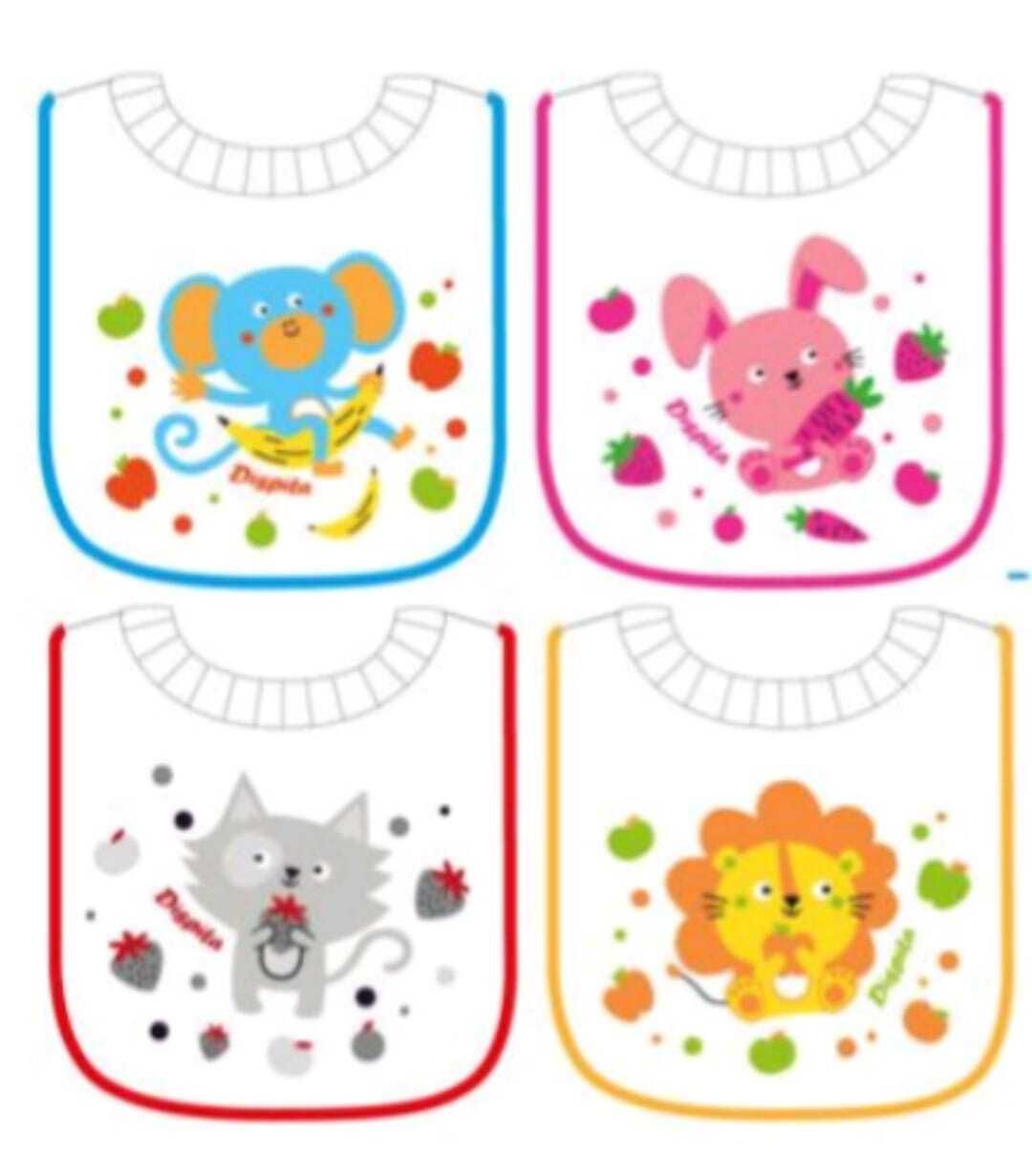 Practico babero mediano,con cuello,estampado.Varios diseños y colores.