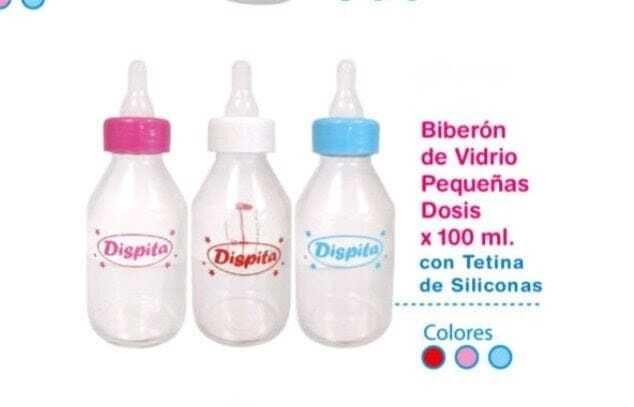 Mamadera de vidrio pequeñas dosis por 100 ml con tetina de siliconas .
